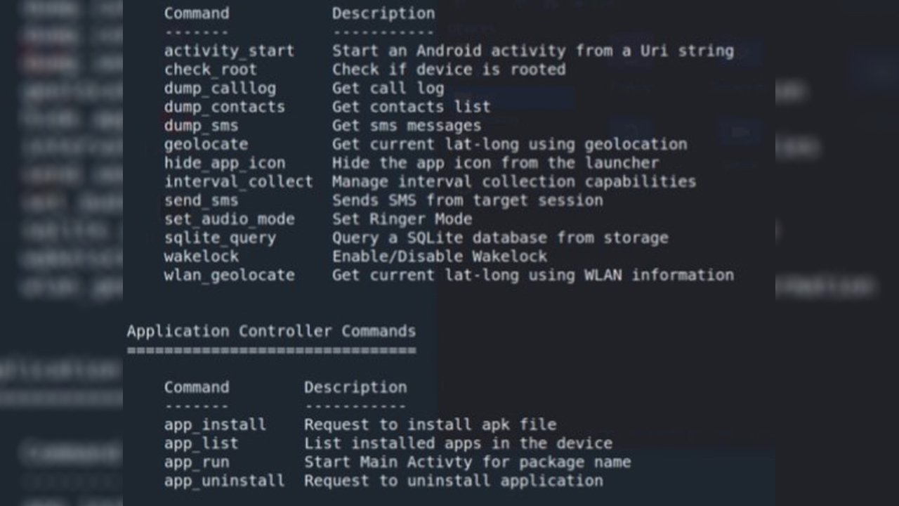Yukarıdaki görselde ise kötü amaçlı bir uygulamaya izin verildiğinde siber korsanların eline geçen komuta ekranı yer alıyor. Kötü niyetli kişiler bu komuta ekranı üzerinden tüm kişisel verilerinize ulaşıp kameranızdan anlık görüntüler alabileceği gibi isterse artık telefonunuza farklı uygulamalar dahi yükleyebilir.